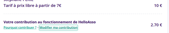 Le prix est libre (à partir de 7 €) . Au moment de payer, HELLO ASSO vous proposera une contribution pour son fonctionnement mais vous pouvez la modifier, voire même l'annuler.