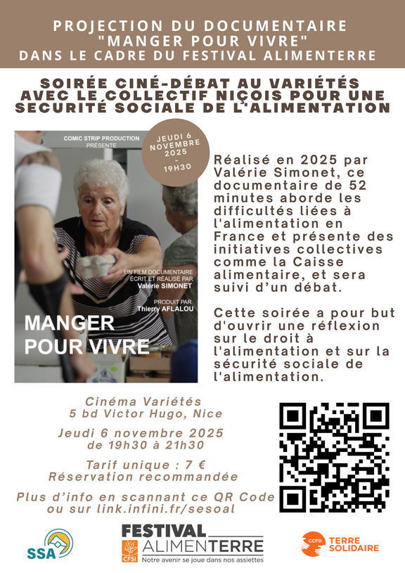 soirée ciné-débat au Variétés avec Collectif niçois pour une SEcurité SOciale de l'ALimentation