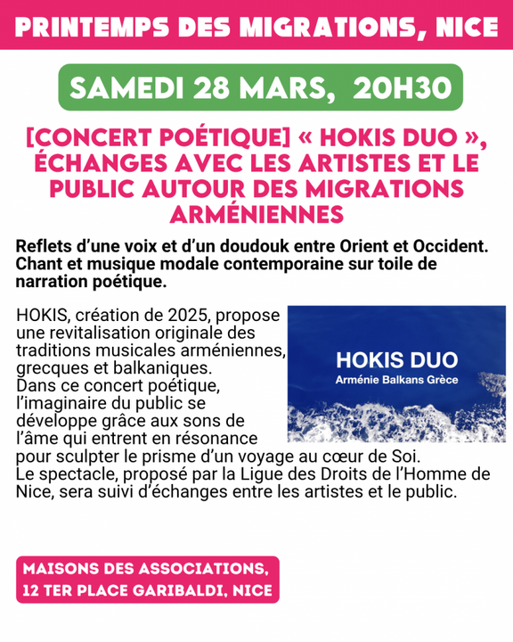 Concert Poétique - "Hokis Duo" échanges avec les artistes et le public autour des migrations arméniennes